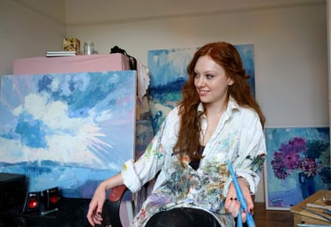 Sophie Fraser was born in Canterbury, Kent in 1992 and grew up in West Cornwall where she has lived since. Her work surrounds ideas of the ever-changing landscape, full of strong colour and textural echoes. Working outdoors as well as in the studio; sketches, photographs, memory, and intuition are key within the development of her paintings. This evokes a sense of the landscape and the connections she feels within it in a semi-abstract manner.